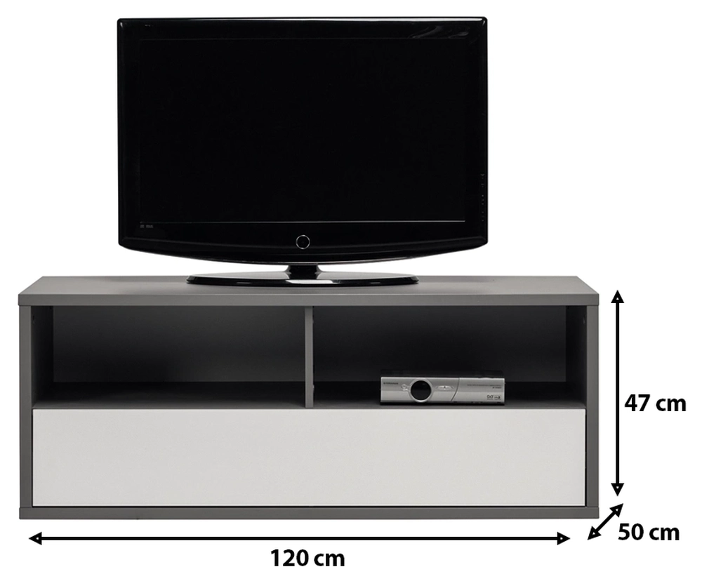 Dieser RTV-Schrank wurde mit Blick auf einen zeitgemäßen Platzbedarf entwickelt und hat eine kompakte 120 cm breit, dadurch ideal für unterschiedlich große Räume. Der Jugendzimmerschrank bietet ein perfektes Gleichgewicht zwischen Eleganz und Zweckmäßigkeit und ist der optimale Ort, um Multimedia-Geräte aufzubewahren und zu präsentieren.