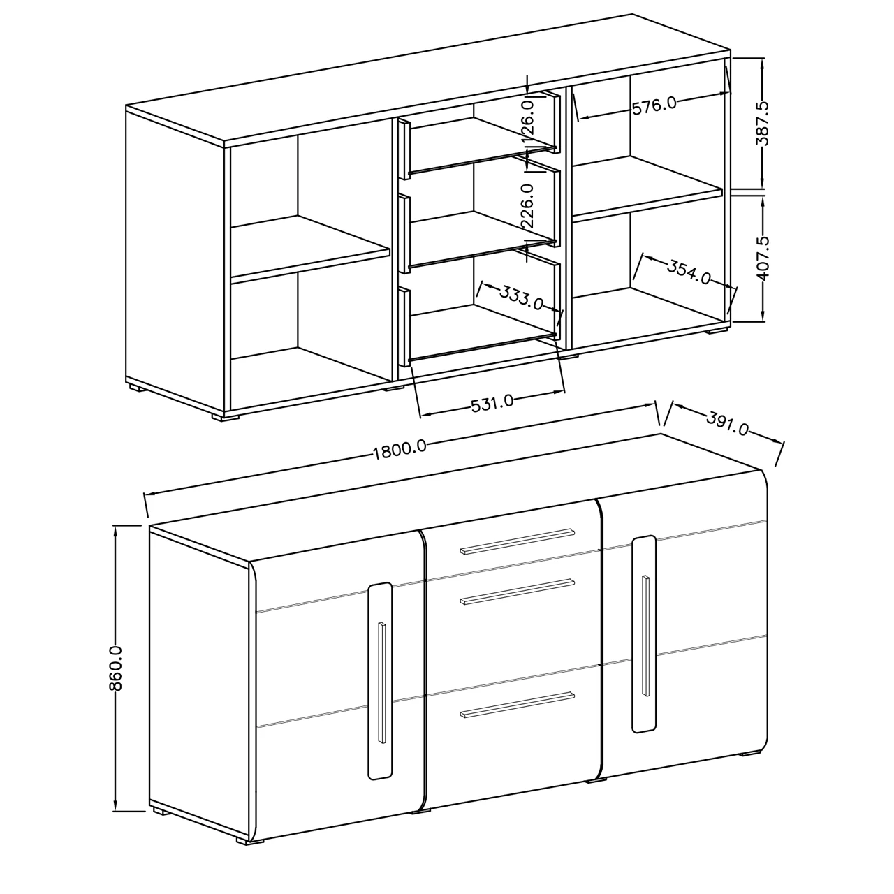 - Die Möbelfronten sind aus laminiertem MDF gefertigt.