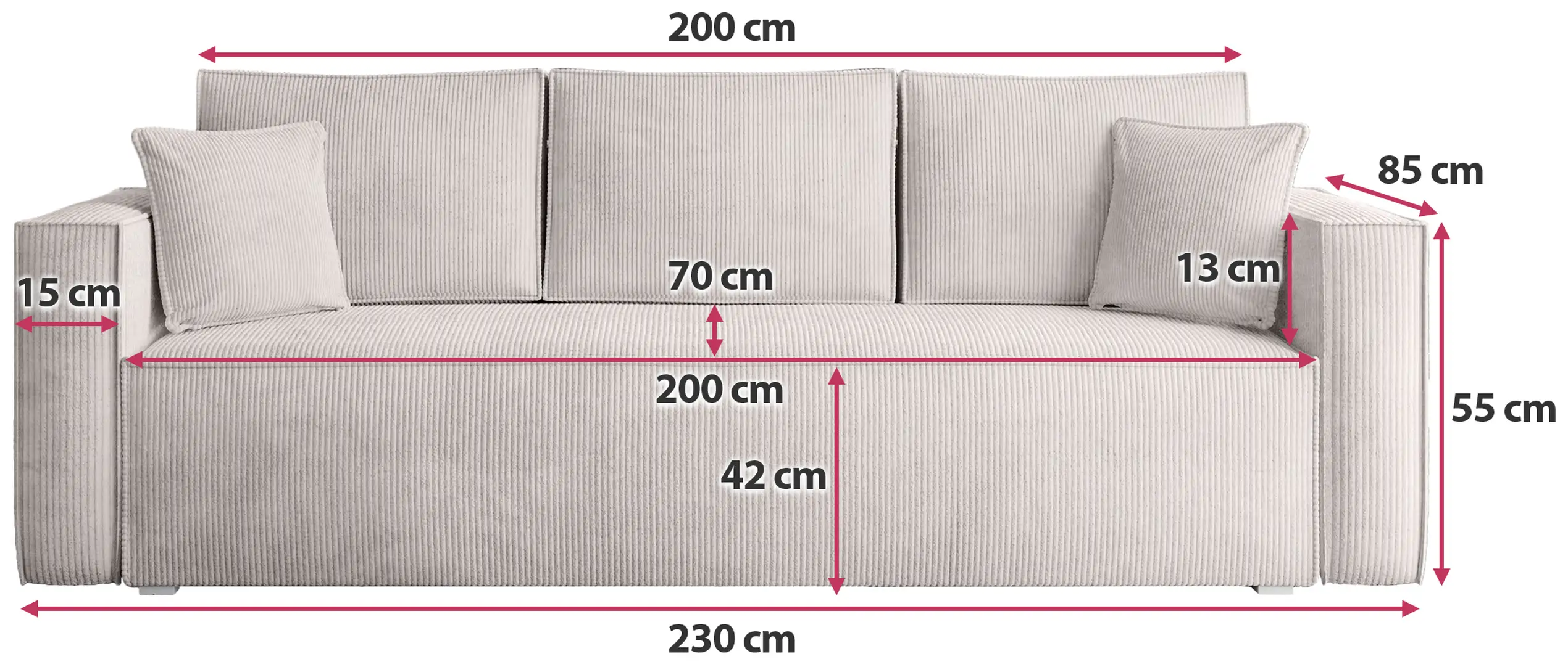 Unser Schlafsofa ist eine Kombination aus hervorragendem Design, Funktionalität und außergewöhnlichem Komfort. Wenn Sie nach einem Möbelstück suchen, das Ihren Erwartungen entspricht und eine einzigartige Atmosphäre in Ihrem Wohnzimmer schafft, ist dies die perfekte Wahl für Sie. Zögern Sie nicht und bestellen Sie es jetzt, um Komfort und Eleganz in Ihrem Wohnzimmer zu genießen!