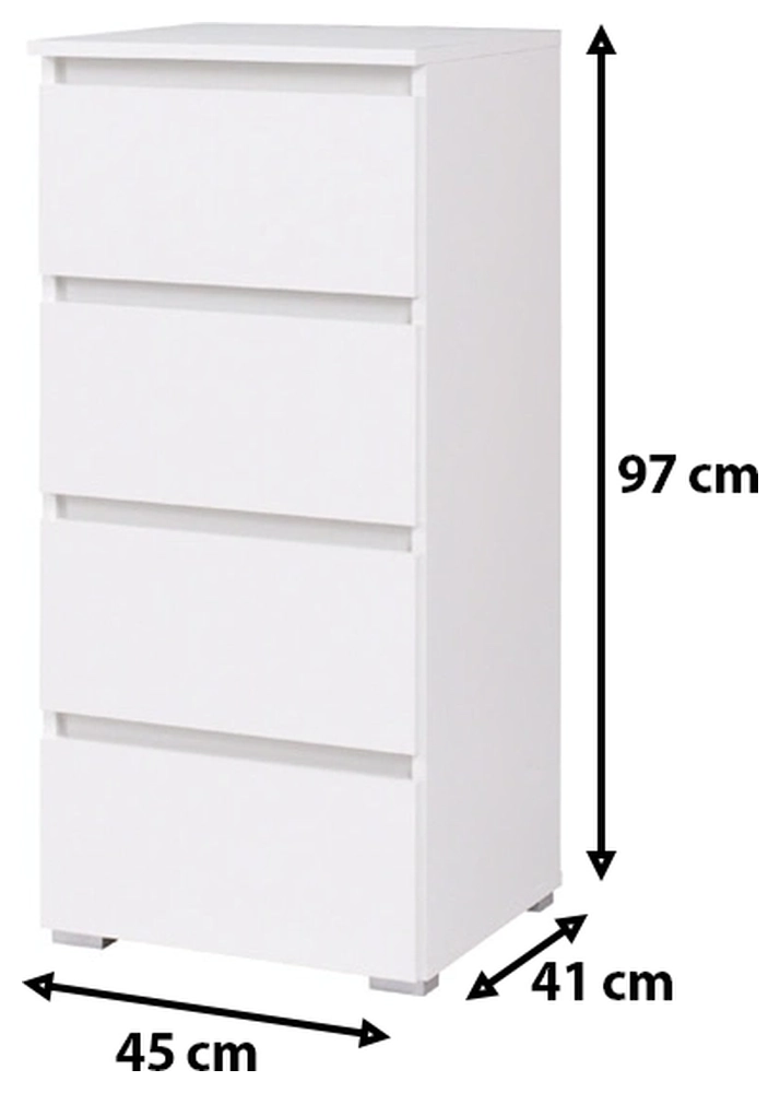 Kommode mit vier Schubladen, ausgestattet mit rollenbahnen, bietet ein sanftes, geräuschloses Öffnen und eine Kapazität, die Sie nicht erwarten würden. Sie sind ideal für die Aufbewahrung von allem, was Sie wollen.