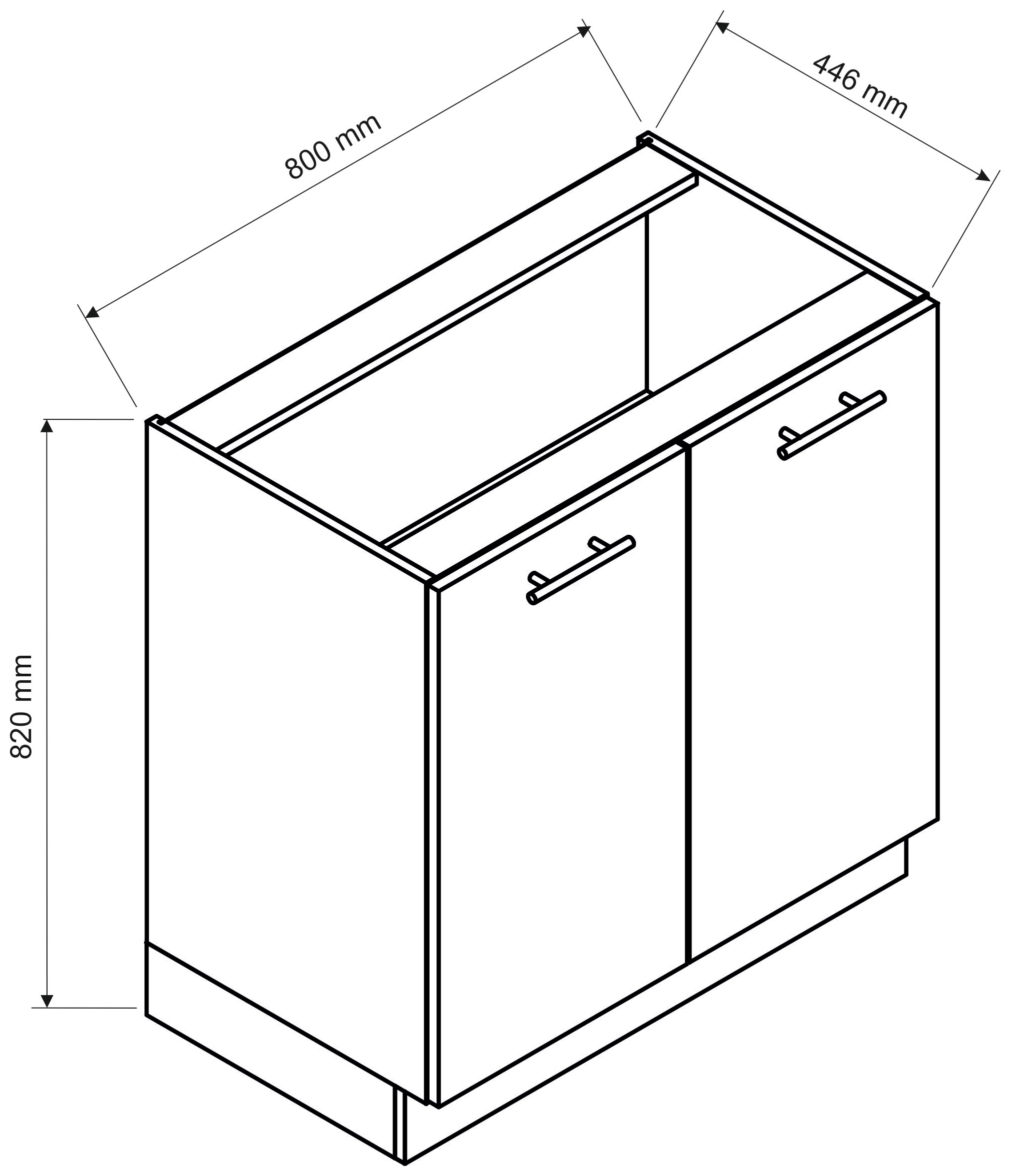 Die Schrankfronten bestehen aus MDF- Platten , die nicht nur stabil, sondern auch pflegeleicht sind. Beständig gegen Schmutz, Kratzer und tägliche Beanspruchung. Metallgriffe mit Chrom-Finish verleihen dem Schrank eine zeitlose Optik und garantieren eine lange Haltbarkeit.