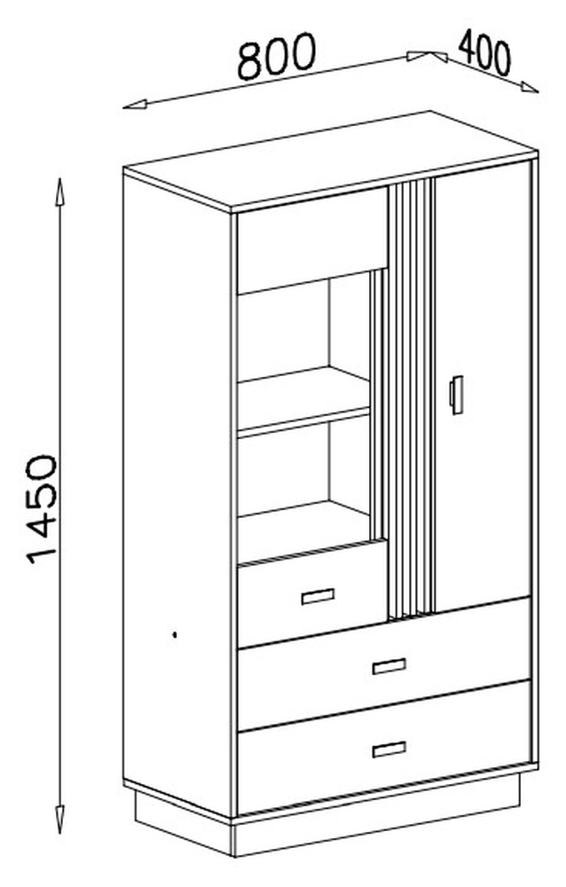 Die Vitrine ist 80 cm breit, die ideale Lösung für unterschiedliche Raumgrößen bei optimaler Raumausnutzung. Zwei Türen, von denen die linke teilweise verglast ist, unterstreichen den eleganten Charakter des Möbels und ermöglichen es Ihnen, Ihre Lieblingsstücke auszustellen.